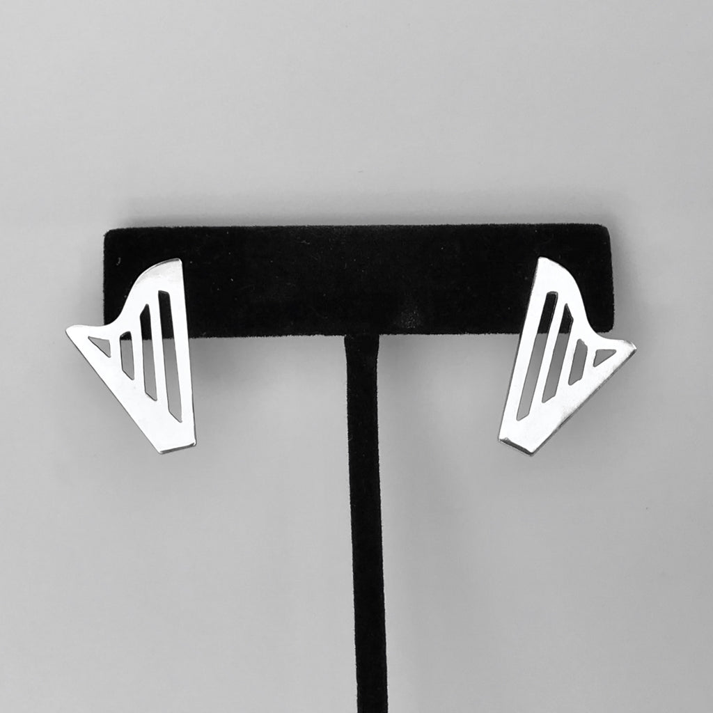 These handmade Sterling Silver CLASSIC or CELTIC HARP stud earrings are 1 inch tall (2.5 cm). Match with any Sterling Silver bracelet or necklace.