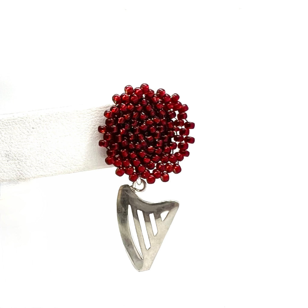 NEW! LIMITED EDITION Embroidered color beads stud earring with Sterling Silver CELTIC HARP