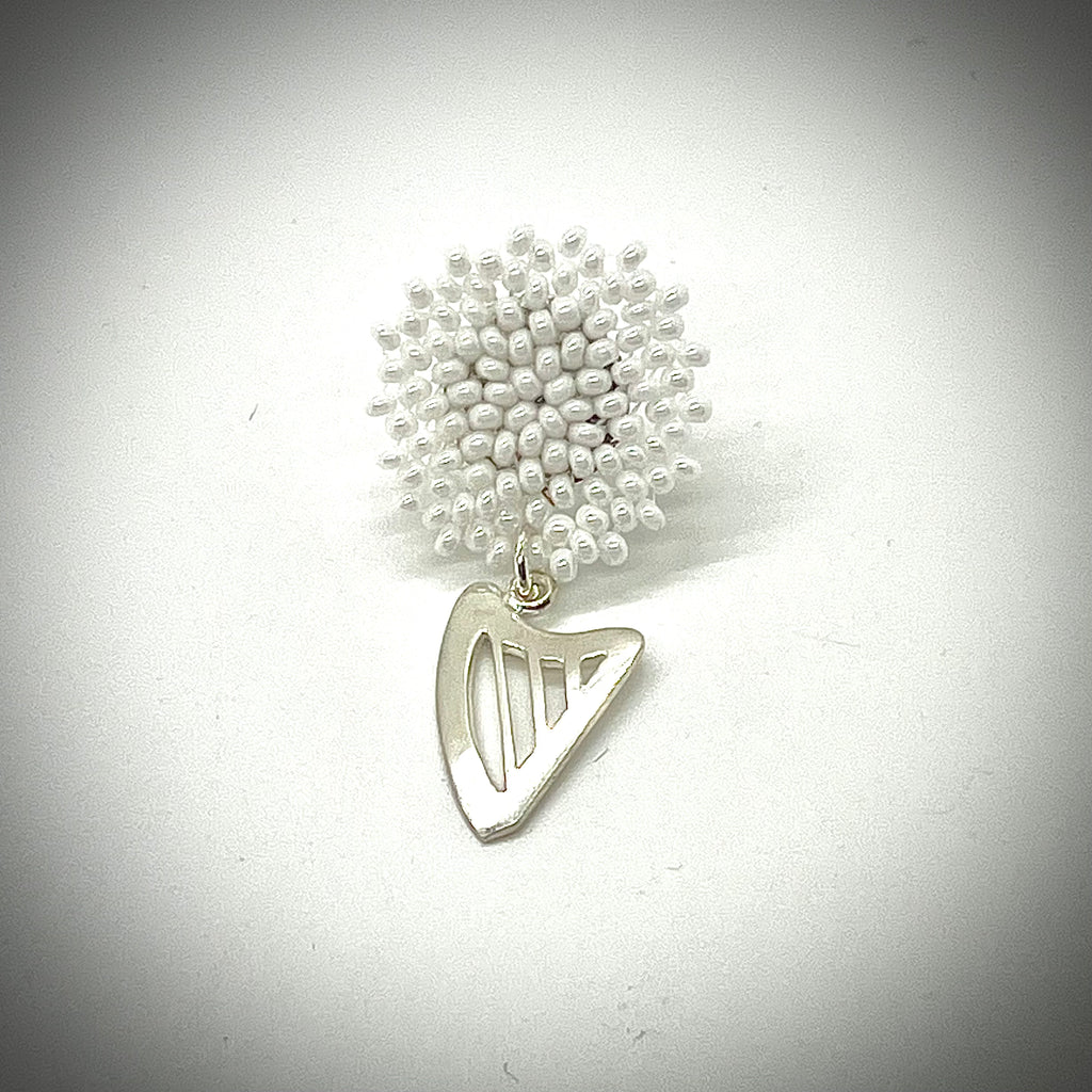 NEW! LIMITED EDITION Embroidered color beads stud earring with STERLING SILVER CELTIC HARP