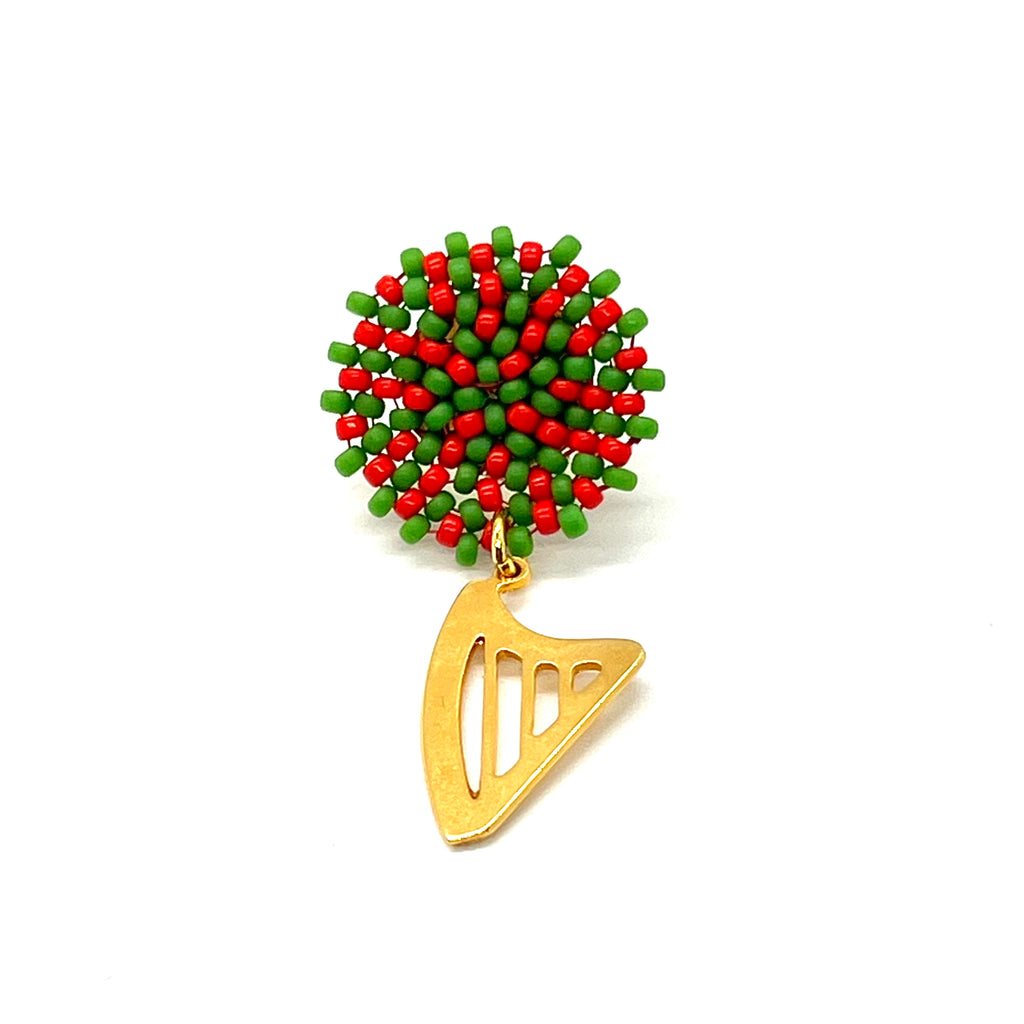 NEW! LIMITED EDITION Embroidered color beads stud earrings with 24K GOLD PLATED CELTIC HARP